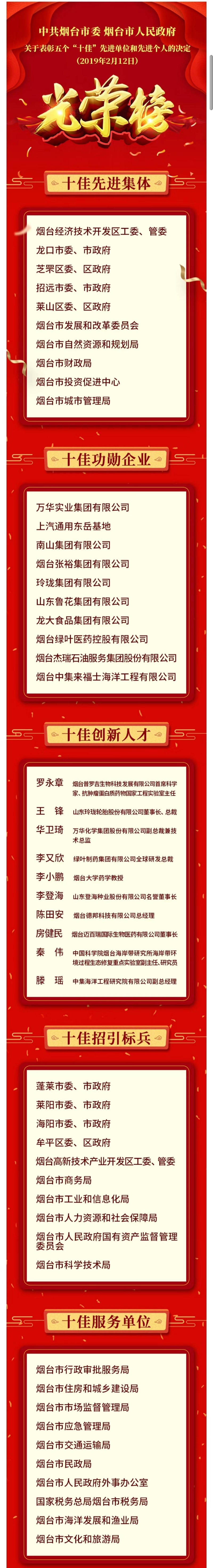 龍大集團榮登“煙臺市2018年十佳功勛企業”