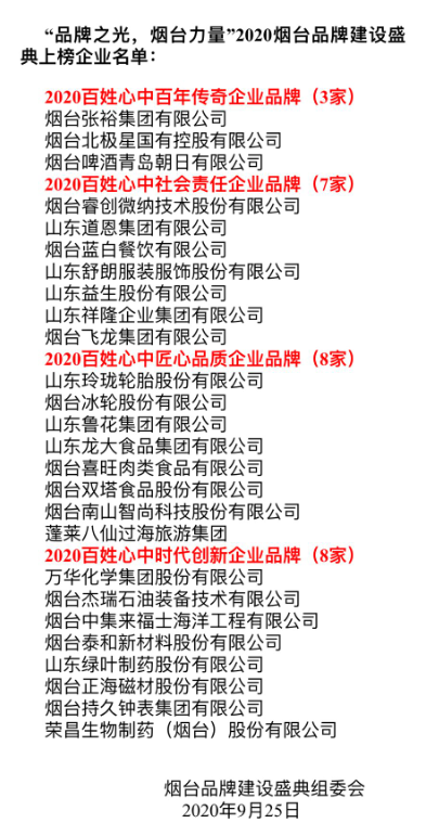 “品牌之光 煙臺力量”2020煙臺品牌建設(shè)盛典隆重舉行